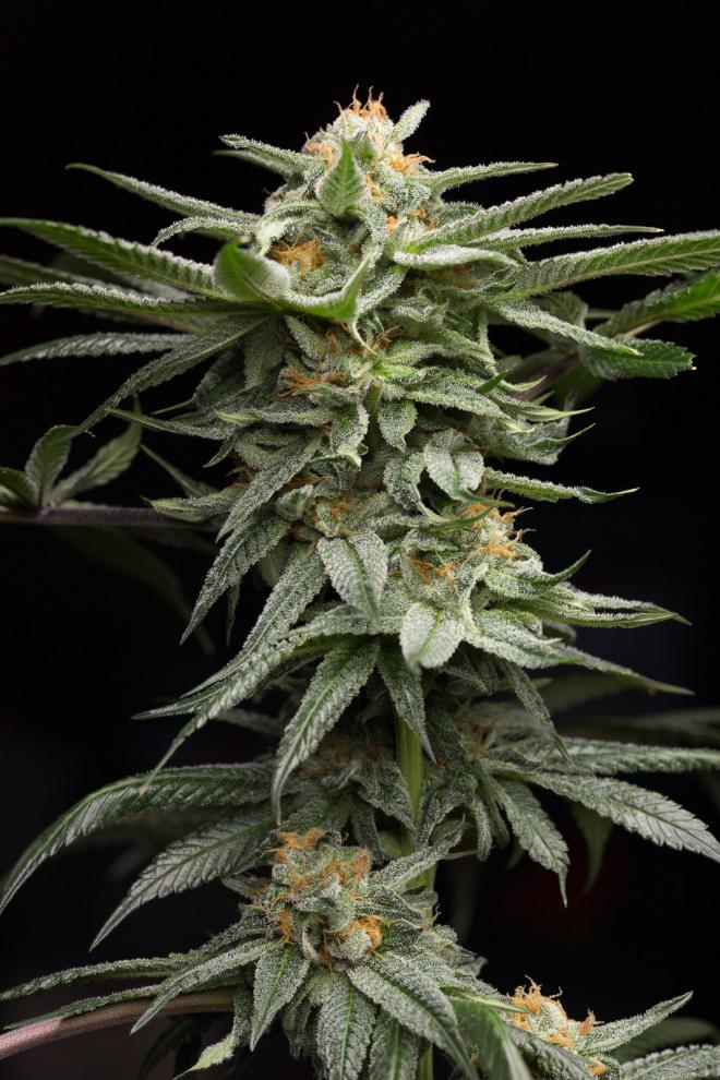 Rapid vegetative growth, more than doubling in size when transitioning into the flowering cycle. Sativa-leaning fan leaves support large, bulbous flowering sites. Explosive calyx development that creates elongated, highly resinous, egg-shaped buds. The terpene profile is expressed through gassy clove and spicy pinewood followed by citrus peel, musky cinnamon, and earthy undertones. This satin-smooth flavor ushers in a powerful, long-lasting sedative effect, great for creative thought and end-of-the-day relaxation. The undeniably enticing appeal and captivating profile of this unmistakable hybrid capture all the traits growers seek in connoisseur-quality genetics. Fast and responsive vertical growth is established early during the plant's lifecycle, so stronger feeding regimes are recommended to meet aggressive metabolic demands.